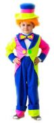 В комплект входят - цветастый фрак, синие брюки, бабочка и высокая шляпа-цилиндр с небрежно выбивающимися из-под нее рыжими волосами.