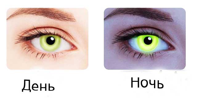Благодаря особым свойствам красителя контактные линзы  светятся под воздействием ультрафиолета. Это, без сомнений будет интересно любителям клубных вечеринок.