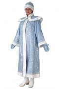 Костюм Снегурочки на подкладке. Для отделки костюма применен белый искусственный шубный мех. По полочкам и рукавам, а также сама пелерина украшена серебрянной тесьмой. Основное отличие данной модели от других костюмов являются его крой по "трапеции". Хорошо подойдет для домашнего праздника или сценического образа. Данная модель - абсолютный хит в прошлых годах по продажам...
