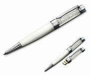 Флешка Ручка шариковая с кристаллами черная