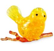 Птичка сидит на веточке, веточка играет роль подставки для готовой головоломки.