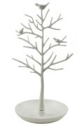 Конструкция из подставки и деревца с птичками в собранном виде служит хранилищем для украшений. Кольца, серьги, браслеты, цепочки, часики и броши - всему найдётся место на ветвях или на удобной подставке. Кольцедержатель удобно брать в поездки, поскольку в разобранном виде он занимает совсем немного места. Классические цвета и современный дизайн делают держатель отличным подарком для самых придирчивых модниц.