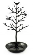 Конструкция из подставки и деревца с птичками в собранном виде служит хранилищем для украшений. Кольца, серьги, браслеты, цепочки, часики и броши - всему найдётся место на ветвях или на удобной подставке. Кольцедержатель удобно брать в поездки, поскольку в разобранном виде он занимает совсем немного места. Классические цвета и современный дизайн делают держатель отличным подарком для самых придирчивых модниц.