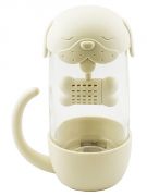 Два в одном - кружка и заварочный чайник на одну персону. Толстые стеклянные стенки кружки сохранят тепло, при этом позволяя любоваться красотой процесса заварки. Крышка в виде мордашки симпатичного животного изнутри снабжена встроенным ситечком. Разъедините детали ситечка, засыпьте немного заварки, опустите в чашку с кипятком и зовите всех смотреть.