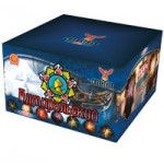 Эффект: Красные звезды раскрываются красными пионами в мерцании; золотыми трещащими кокосами в зеленых пионах, синие звезды раскрываются синими пионами в мерцании; золотые кометы раскрываются трещащими золотыми коронами с жемчужинами, золотой парчовой короной в жемчужинах, золотыми кокосами в жечужинах. В финале залп золотых