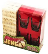 Популярная игра Дженга теперь снабжена стопками и даёт возможность проигравшему компенсировать свою неудачу рюмкой бодрящего напитка. Правила игры просты. На первом этапе из брусков строится башня (в каждом уровне 3 бруска, на каждый следующий уровень бруски кладутся перпендикулярно предыдущему). Далее игроки по очереди вытаскивают бруски из основания башни и кладут их сверху, делая башню всё более высокой и все менее устойчивой. Можно предварительно проверять бруски на устойчивость положения, так же можно передумать и оставить на месте уже слегка вытащенные бруски. Касаться башни при этом разрешается только одной какой-либо рукой. Проигравшим считается тот, чей ход обрушит башню. Ему и наливают штрафную.