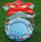 Детский надувной бассейн Морская Звездочка с надувным дном, предназначен для купания малышей возрастом 1-3 годика. Особенностью данной модели является мягкий надувной пол, благодаря которому детям будет комфортно и приятно. Навес предохраняет от ярких лучей солнца. В комплект входят три надувные игрушки-рыбки, с ними можно играть и крепить к опоре крыши бассейна. Поверхность надувного дна имеет противоскользящее покрытие и сливной клапан.