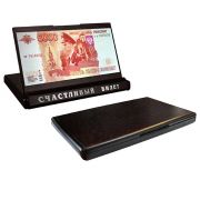 Деревянная плакетка-подставка с металлической накладкой в виде купюры