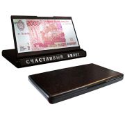 Деревянная плакетка-подставка с металлической накладкой в виде купюры