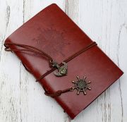 Тончайшая состаренная бумага, собранная на крепкую пружину, бархатистый разворот, обёртка из экокожи с тиснением, тонкий ремешок с подвеской - детали, делающие обычный блокнот изысканным подарком.