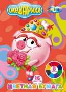 Бумага цветная СМЕШАРИКИ-НЮША (16 листов, 8цветов)