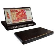 Деревянная плакетка-подставка с металлической накладкой в виде купюры