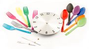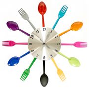 Внимание! Часики поставляются в коробке, ложки-вилки и стрелочки отдельно, сборка простейшая, осуществляется самостоятельно. Стрелочки выставляем на 12 обе, аксессуары втыкаем в любой последовательности как нравится.