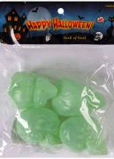 Набор из светящихся в темноте черепов - отличный декор или сувенир для Хэллоуина. Размер черепа 6см, 4шт в упаковке.