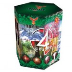 Эффект: Серебряные вертушки раскрываются красными хризантемами в синих жемчужинах. В финале залп нескольких зарядов.