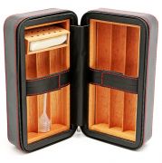 Мини-хьюмидор на 4 сигары в виде компактного кожаного футляра на молнии, увлажнитель