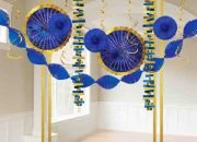 В упаковке 14 элементов: 2 больших фанта 40 см, 3 маленьких фанта 20см, 1 гирлянда из бумаги тишью 2,74м, 2 подвески 2,3м и 6 блестящих спиралей.