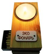 Эко фонарь - забавный сувенир для тех, кто бережёт природные ресурсы. Представляет из себя деревянное основание со свечкой и спичками. Этот необычный сувенир станет отличным подарком для друзей или родных по любому поводу.