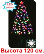 Ель светодиодная фиброоптическая "Волшебная" с разноцветными украшениями. Серебряные украшения, подсвечиваемые автоматически меняющими цвет светодиодами.