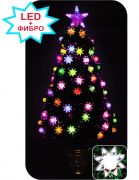 Ель светодиодная фиброоптическая "Волшебная" с разноцветными украшениями. Серебряные украшения, подсвечиваемые автоматически меняющими цвет светодиодами.