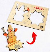Елолчная игрушка- открытка "Весёлый снеговик"