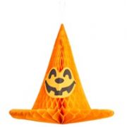 Оранжевая шляпа ведьмы из сотовой бумаги . Размер изделия 34см.