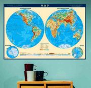 Самая полная и достоверная физическая карта Земли, полностью на русском языке. Западное и Восточное полушария нашей планеты здесь представлены с подробным рельефом местности, с названиями географических объектов и самых крупных населенных пунктов. Карту можно повесить на стену или положить на стол, под стекло. Она сделана из плотной матовой бумаги, нанесение изображения четкое и яркое. Физическая карта – базовое учебное пособие для занятий географией. Она также поможет подготовиться к олимпиаде или к экзамену, или просто расширить свои познания о мире. Настенные карты хорошо оживляют офисное пространство. Карты данной модели упакованы в небольшие тубусы, которые очень удобны при транспортировке. Бумага внутри них не мнется и всегда остается в хорошем виде.