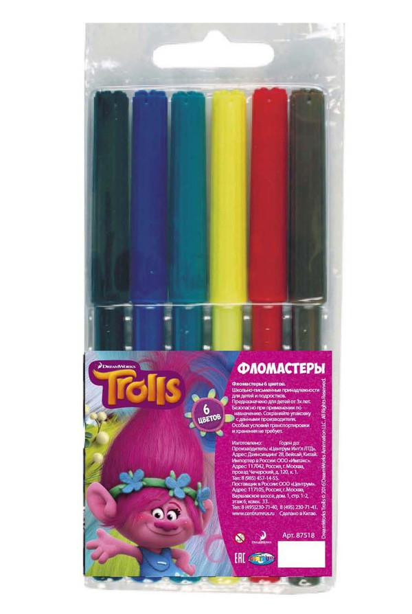 Фломастеры 'Тролли', 6 цветов