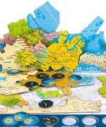 Эта уникальная карта-пазл посвящена нашей стране России. Она состоит из географической карты России, пазла, части которого – часовые пояса, и увлекательной игры с часами. В настоящее время территория нашей страны разделена на девять часовых поясов. Границы часовых поясов проходят по ряду границ субъектов Российской Федерации. Каждый субъект входит только в один часовой пояс. Исключения – Якутия, которая входит сразу в три пояса, и Сахалинская область, которая входит в два.