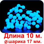 60 светодиодов в матовых шариках Ø17мм. на черном PVC проводе, постоянное свечение. Светодиоды помещены в цельный корпус-шарик из PVC (не бьются!). Возможно соединение друг с другом до 20 гирлянд!