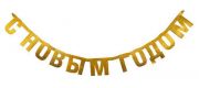 Перетяжка, праздничное украшение интерьера. Гирлянда С НОВЫМ ГОДОМ с блестящим золотым глиттером (блестками).