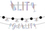 Перламутровая надпись Get Lit длиной 180 см и гирлянда из кисточек и объемных бумажных шаров длиной 173 см.
