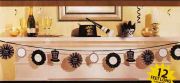 Новогодняя Гирлянда в стиле Голливуд с объемными фантами и баннерами в виде шляпы-цилиндра и новогодних курантов. Часы и шляпы украшены глиттерной серебряной крошкой и надписями Happy New Year. В комплект входят 12 баннеров и атласная черная лента длиной 365 см, вы можете самостоятельно выбрать порядок размещения элементов на ленте.