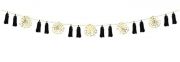 Бумажную гирлянду легко собрать самому. В комплекте: 5 золотых паутинок, 12 черных кисточек, 12 черных зажимов и 2,3 м золотой нити. Размер после сборки: высота 14 см, длина 1,75 м.