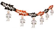 Гирлянда - объемное, декоративное украшение интерьера. На гирлянде размещены 6 баннеров в виде Скелета. Гирлянда станет прекрасным у крашением вечеринки в стиле "Хэллоуин".