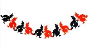Красивая фигурная гирлянда - объемное, декоративное украшение интерьера из гофрированной бумаги-тишью. Повторяющийся элемент выполнен в форме Ведьмы на метле. Гирлянда станет прекрасным украшением вечеринки в стиле "Хэллоуин".