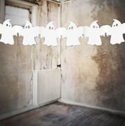 Гирлянда из папиросной бумаги, белые привидения, размер 15,5 см х 3 метра.