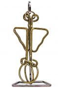 Головоломка изготовлена из металла с латунным напылением, что придаёт ей винтажный, дорогой вид. Головоломка закреплена на изящной витой подставке. Задачей этой серии является необходимость снять кольцо. Уровень сложности-5. Упаковка – индивидуальная картонная коробка с окошком.