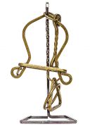 Нет неразрешимых задач, есть непростые решения! Головоломка изготовлена из металла с латунным напылением, что придаёт ей винтажный, дорогой вид. Головоломка закреплена на изящной витой подставке. Задачей этой серии является необходимость снять кольцо. Уровень сложности-3.