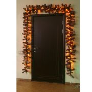 Гирлянда из металлизированной хвои, украшенная фиброоптической электрогирляндой, для новогоднего декорирования помещений и дверных проемов. Обратите внимание на фото- для украшения стандартного дверного проёма использованы две гирлянды, соединенные последовательно друг с другом.