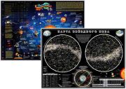 Интересная настольная карта 2 в 1. Продукт объединил два популярных сюжета: карту Солнечной системы и карту Звездного неба. Карта поможет детям усвоить новую информацию без особого труда. Просто прикрепите ее к обеденному или письменному столу ребенка, и он будет рассматривать красочные иллюстрации, запоминая интересные факты о нашей Вселенной. Карта сделана из плотного заламинированного картона, которому не страшна влага и грязь. Протрите поверхность влажной тряпкой, и от пятен не останется и следа. Углы закруглены, поэтому ребенок не порежется. На карте вы найдете общую информацию о Солнечной системе и карте Звездного неба, факты из истории космонавтики, изображения космических объектов и летательных аппаратов и многое другое.