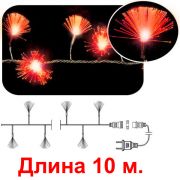 Светодиодная электрогирлянда с фиброволокном. Постоянное свечение. С каждой стороны гирлянды имеется разъем-коннектор («мама-папа»). С одной стороны подсоединен шнур питания (входит в комплект), с противоположной установлен колпачек-заглушка. Используя эти разъемы можно соединить гирлянды между собой последовательно в цепочку до 8-и гирлянд с одним шнуром питания.