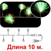 Светодиодная электрогирлянда с фиброволокном. Мерцает каждая 5-ая кисточка. С каждой стороны гирлянды имеется разъем-коннектор («мама-папа»). С одной стороны подсоединен шнур питания (входит в комплект), с противоположной установлен колпачек-заглушка. Используя эти разъемы можно соединить гирлянды между собой последовательно в цепочку до 8-и гирлянд с одним шнуром питания.
