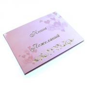 Оригинальные свадебные аксессуары, фабричное производство. Обложка плотный картон, ламинирован плёнкой с типографской фотопечатью + тиснение золотистой фольгой (буквы). Внутри страницы для пожеланий (семья, друзья, подруги, гости и т.д.) всего 10 листов.