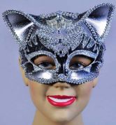 Полумаска Кошка серебристая