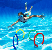 Специальные кольца предназначены для обучения подводному плаванию. Благодаря утяжелителям кольца устойчиво стоят на дне бассейна. В наборе четыре разноцветных кольца. Для детей от 6 лет и взрослых.