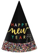 Стильный новогодний колпак с бокалами и глиттерной россыпью блестящих мелких конфетти. Высота колпака 23см, снабжен резиночкой для быстрого крепления на голове.
