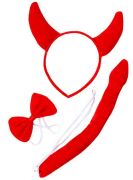 В набор входят 3 предмета: рога на ободке, галстук-бабочка на резинке и длинный хвост с острым наконечником.