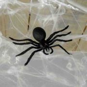 Черный пластиковый паук размером 19см, разместившийся на белой паутине - прекрасное решение для декора интерьера на Хеллоуин.