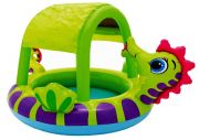 Надувной бассейн круглый зеленый с рисунками и навесом Морской конек.